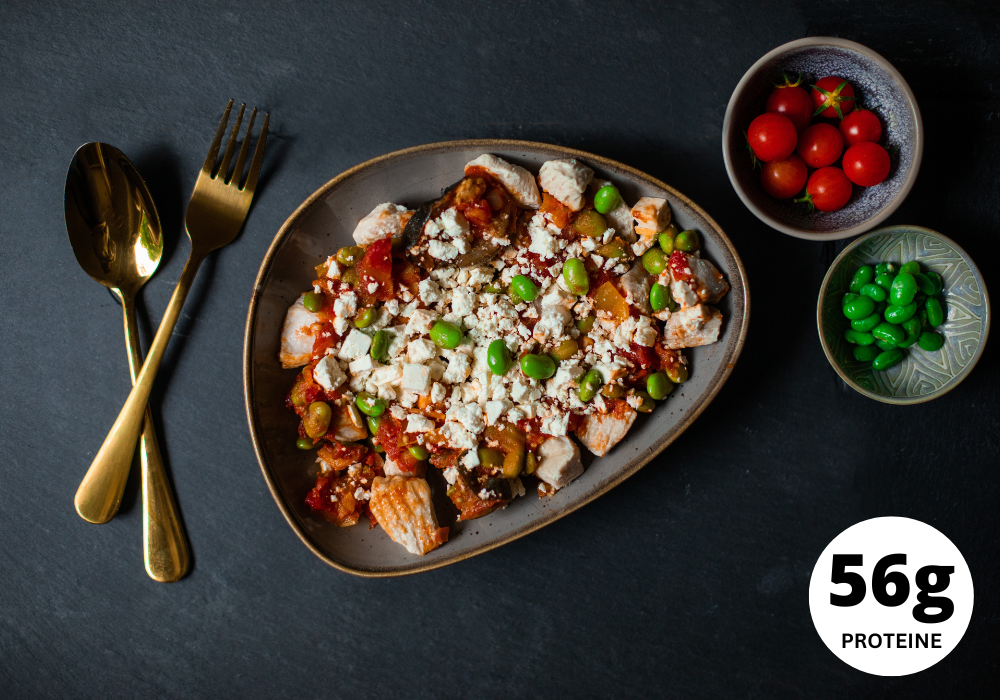 Lasciati conquistare da questo delizioso piatto a base di deliziosa carne di pollo, fagiolini verdi, peperoni, melanzane e un tocco finale di formaggio bianco.
